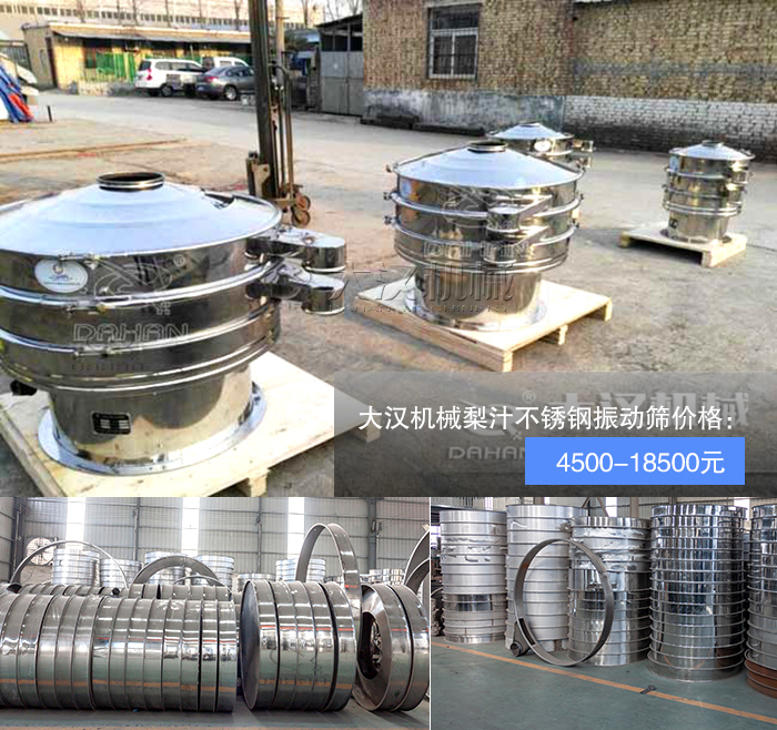 除了以上兩種篩分優勢以外,大漢機械所生產的梨汁過濾不銹鋼振動篩的價格優勢,具體如下: