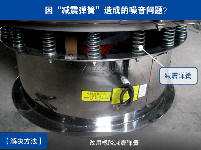 三次元振動(dòng)篩在篩分過(guò)程中如果采用鋼絲減震彈簧會(huì)發(fā)生彈簧與支座之間發(fā)生摩擦產(chǎn)生噪音,所以可改成橡膠材質(zhì)的減震彈簧。
