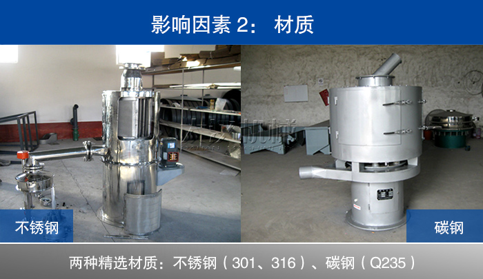碳化鎢粉氣流篩分機常用的材質有多等級的不銹鋼和碳鋼,不銹鋼材質的優勢就是明顯的防銹防腐耐高溫,所以在價格上不銹鋼也要比碳鋼的貴不少,對于它的材質選擇主要是看您對于衛生安全要求和預算成本要求,對于衛生安全要求不高、預算成本低的企業選擇碳鋼材質的碳化鎢粉氣流篩分機就可以。