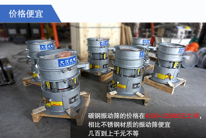 碳鋼振動篩的價格在4500-22680元之間,相比不銹鋼材質(zhì)的振動篩便宜幾百到上千元不等,除食品、醫(yī)藥、化學等對于衛(wèi)生要求較高以外的用戶和企業(yè)都可以選擇碳鋼材質(zhì)的振動篩,直線篩因為在型號和體積上比選擇要多和大,所以就算是和同材質(zhì)的旋振篩相比價格上也會高出一些。