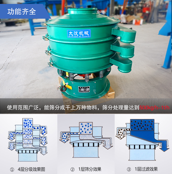 碳鋼振動篩的使用范圍廣泛,能篩分成千上萬種物料,如:洗衣粉、膩子粉、石英砂、谷糠、紙漿、尿素、聚乙二醇、、飼料、建筑石膏粉、催化劑等,可滿足10目 - 400目物料的篩分、過濾、分級、除雜,功能齊全、簡單篩分用單層、多規(guī)格分級用多層,篩分處理量達到500kg/h-1t/h,可以與生產(chǎn)線結(jié)合。