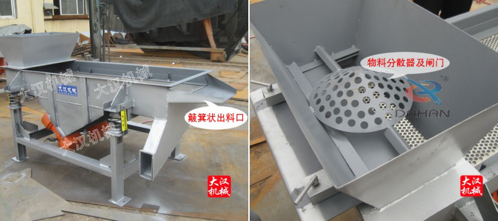 大漢機(jī)械廠家根據(jù)客戶要求針對(duì)鋸末行業(yè)特殊設(shè)計(jì)了一款加裝傘形分料器的直線振動(dòng)篩,解決篩網(wǎng)堵塞問(wèn)題,鋸末和石頭完全從出料口中排出來(lái),提高了篩分產(chǎn)量。