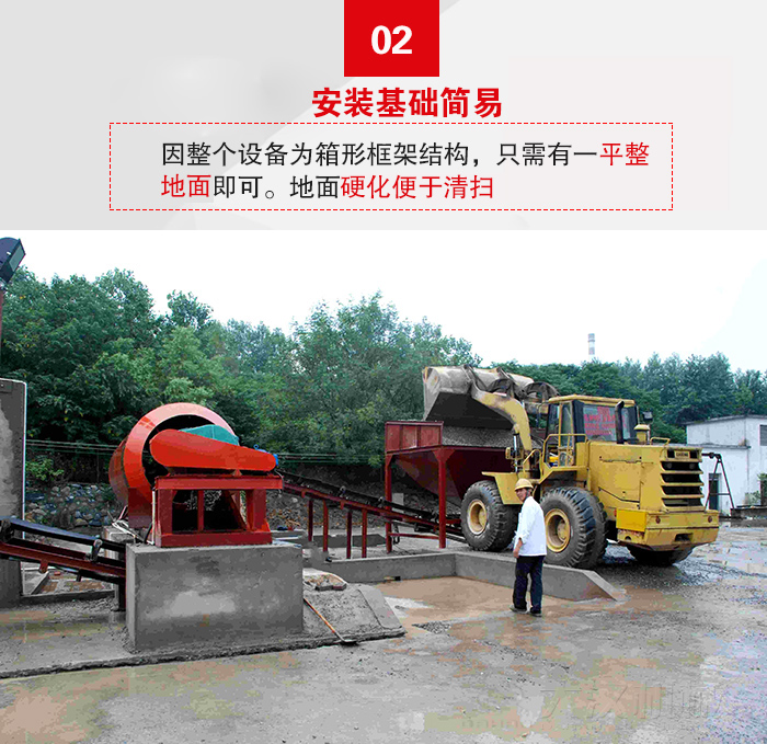 因整個設備為箱形框架結構,只需有一平整地面即可。地面硬化便于清掃。