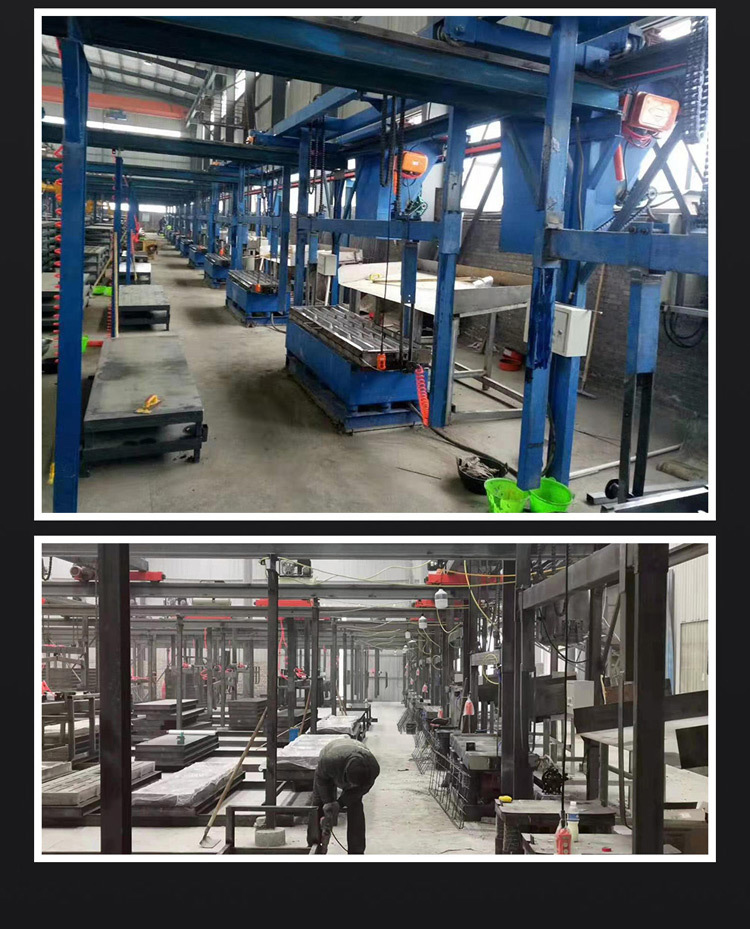 三維振動(dòng)平臺(tái):有4-8個(gè)振動(dòng)電機(jī),具有上下、左右、前后三維振動(dòng)效果,振動(dòng)頻率可調(diào),生產(chǎn)效率高,改變了傳統(tǒng)鑄造行業(yè),三維振動(dòng)使松散的型砂(干砂)緊密,主要用于樹(shù)脂砂、消失模等鑄造生產(chǎn)。功率2.2kwx(4-5),激振力120KN,承載重量12T,承載能力可設(shè)計(jì)制造至15T。