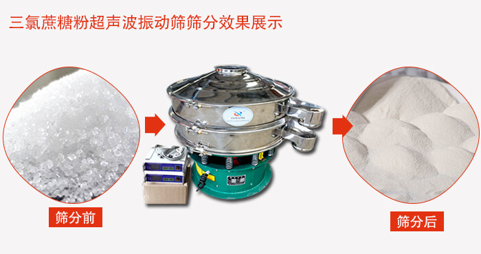 產(chǎn)品簡介:三氯蔗糖粉超聲波振動篩是超聲波技術與振動篩分技術的有機結合,它可以由普通篩分進行簡單的加超聲波系統(tǒng)改造而成,利用超聲波振動篩進行三氯蔗糖的篩分,能夠減少篩分過程的粉塵污染及產(chǎn)品消耗
