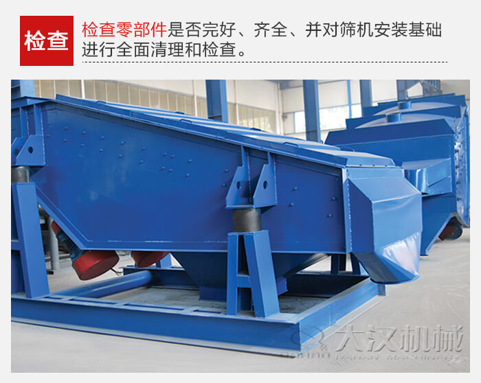 要檢查零部件是否完好、齊全、并對篩機安裝基礎進行全面清理和檢查。